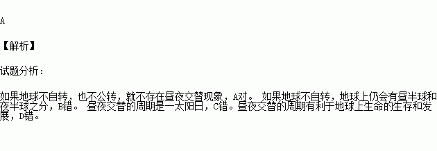 A.如果地球不自转,地球上就不存在昼夜交替现象