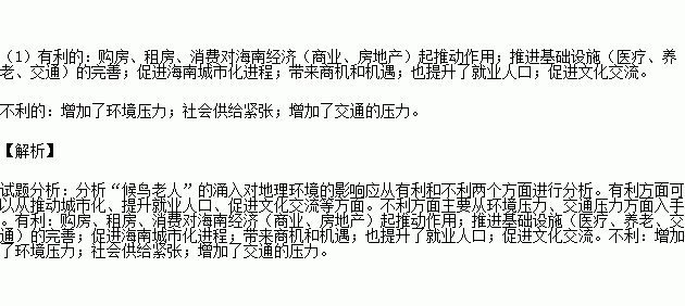 (1)分析“候鸟老人”的涌入对海南地理环境的影响。