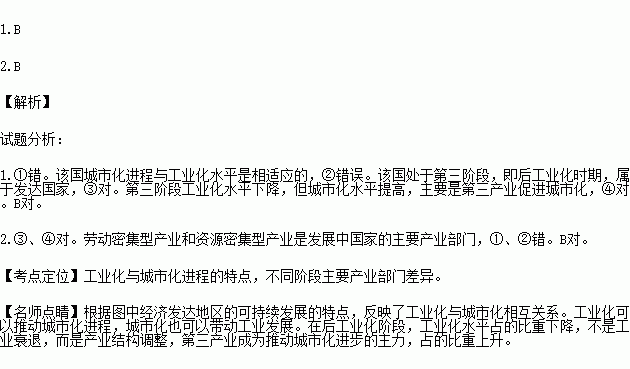 1.关于该国工业化、城市化进程特点的叙述,正确的是