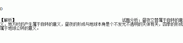 A. 昼夜交替 B. 地方时的产生 C. 昼夜形成 D. 四季的形成