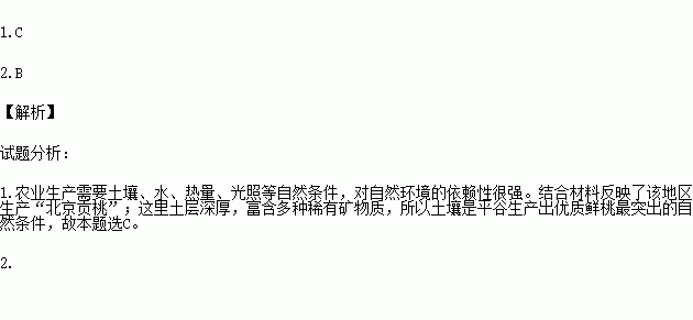 ±±¾©Æ½¹ÈÇøÀúÊ·ÉϾÍÒÔ³ö²ú¡°±±¾©¹±ÌÒ¡±¶øÎÅÃû¡£ÕâÀïÍÁ²ãÉîºñ£¬¸»º¬¶àÖÖÏ¡ÓпóÎïÖÊ¡£½üÄêÀ´£¬Æ½¹ÈÇø¸ù¾Ý¹ú¼ÊÊг¡µÄÐèÒª£¬Òýµ¼¹ûÅ©¿ÆÑ§Ê©·Êʩҩ£¬Ê¹µÃ»¯·ÊºÍũҩ²ÐÁôµÃµ½ÁËÓÐЧ¿ØÖÆ£¬ÏÊÌÒ³ö¿ÚºÏ¸ñÂÊ´ïµ½ÁË100%¡£¾Ý´Ë»Ø´ðÏÂÁи÷Ìâ¡£