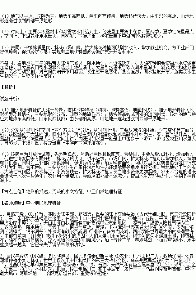 (3)素有“白金之国”美誉的乌兹别克斯坦盛产优质长绒棉。针对该地区棉花市场广阔的特点,有人建议进一步扩大棉花种植面积。你是否赞同?请从可持续发展的角度说明理由。