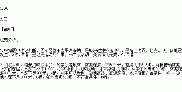 1.该海域地震频发的原因是