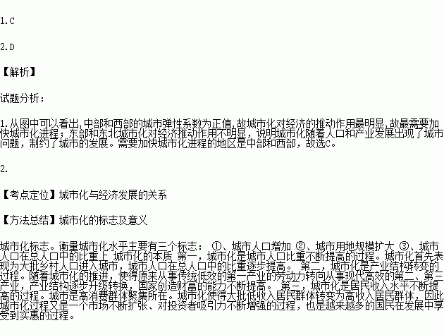 1.据材料推断,最需要加快城市化进程的地区是