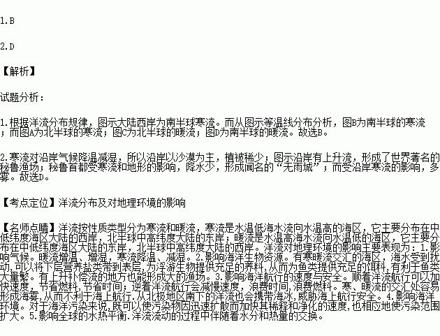 2.下列对L洋流沿岸地区的表述,不正确的是