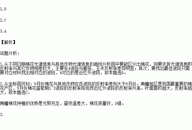 1.容易将棉花从其他作物中识别出来的最佳波段是( )