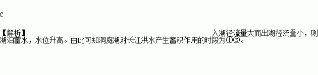 (2012广东高考)下图为“某次长江洪水过程洞庭湖入、出湖径流量的变化”。这段时间洞庭湖对长江洪水产生蓄积作用的时段是( )