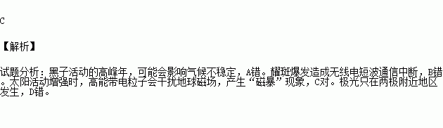 A.黑子活动的高峰年,地球上的气候状况相对稳定