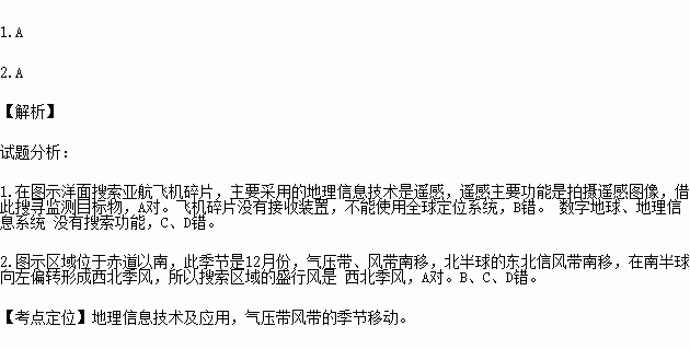 1.在图示洋面搜索亚航飞机碎片,主要采用的地理信息技术是