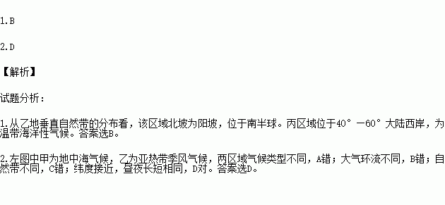 读某区域(左图)和该区域乙地垂直自然带分布示意图(右图),回答问题。