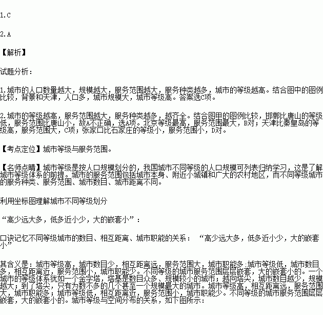 读“京津冀部分地区示意图”(下图),完成下列问题。