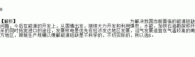 为解决我国当前面临的能源短缺问题,今后在能源的开发上,应该( )