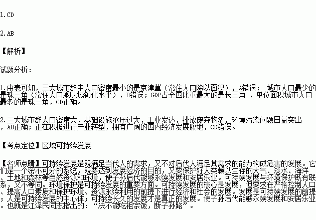 2.当前,三大城市群面临的共性问题有( )