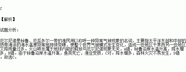 “厄尔尼诺”现象最有可能导致秘鲁( )