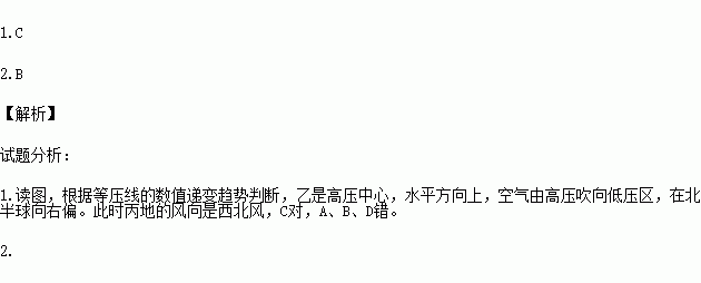 1.此时丙地的风向为