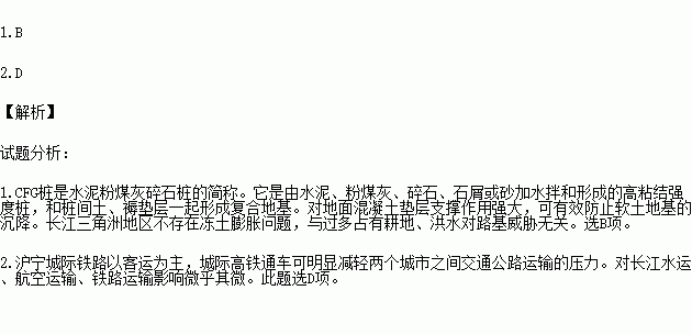 沪宁高铁多段地基采用水泥粉煤灰碎石(CFG)桩施工技术。读铁路CFG柱桩示意图,完成下列各题。![]()