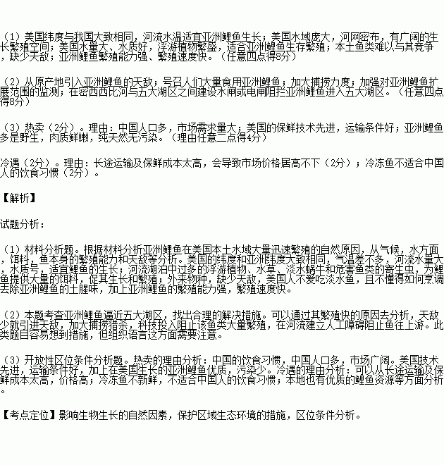 (1)Çë¸ù¾Ý²ÄÁÏÒ»·ÖÎöÑÇÖÞÀðÓãÔÚÃÀ¹ú±¾ÍÁË®Óò´óÁ¿Ñ¸ËÙ·±Ö³µÄ×ÔÈ»ÔÒò¡£