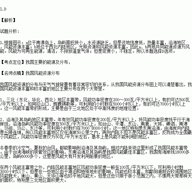 关于a、b两地共同能源资源特征的叙述,正确的是