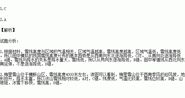 1.模拟的我国雪线高度分布的基本趋势是( )