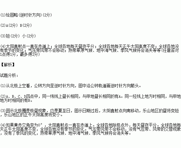 (4)如果黄赤交角变为0°,你认为地球上的自然现象可能会发生哪些变化