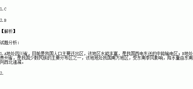 A.A所在地区目前是我国人口主要迁入区 B.A所在地区能源缺乏,需要大量调入