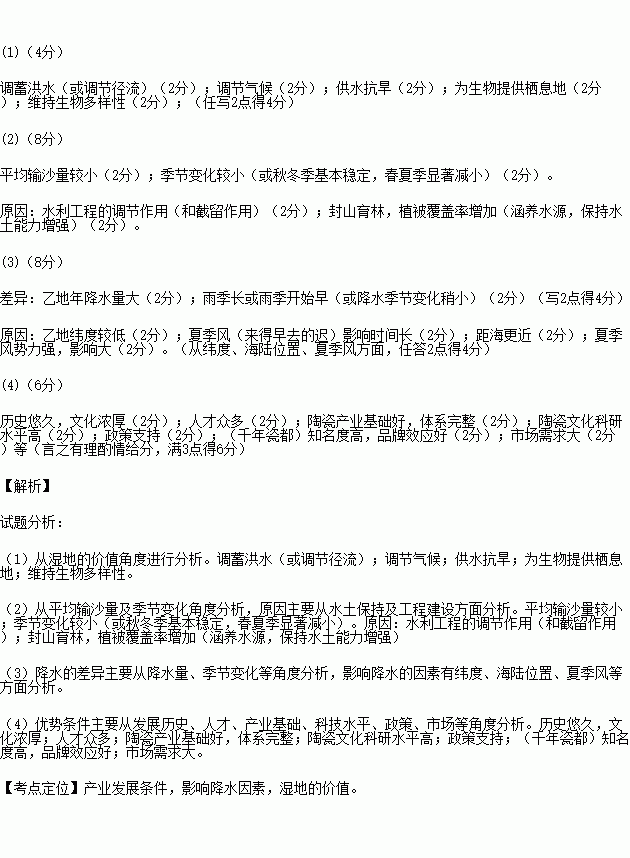 (3)指出与甲地相比乙地降水的差异并分析原因(8分)。