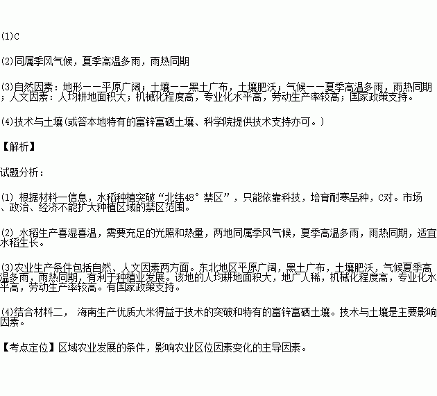 (2)东北与海南相距近30个纬度,可两地都能发展水稻种植业,共同的自然原因是___________________________________________________。
