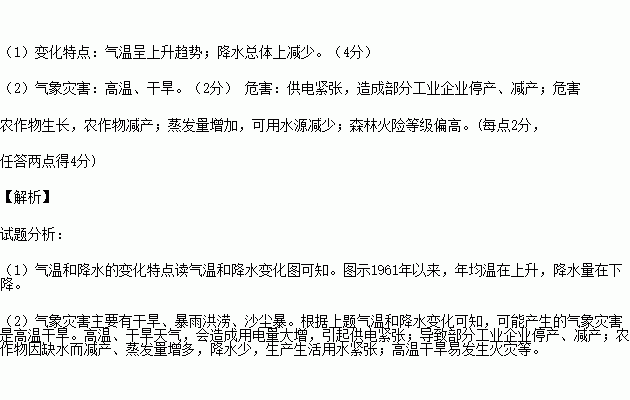 (1)描述气温和降水的变化特点。(4分)