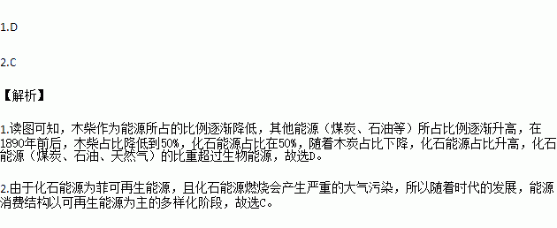1.人类利用化石能源(煤炭、石油、天然气)的比重超过生物能源的时间约在( )