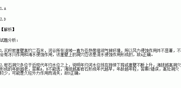 ijºÓ¹ÈÒ»¿é¸ßÔ¼¶þ°ÙÃ׵ľ޴ó³Á»ýÑÒѱÚÉÏ·Ö²¼×ÅÐí¶àÖ±¾¶Ð¡ÓÚÒ»Ã׵Ķ´Ñ¨£¬ºÓ¹ÈËùÔÚÁ÷ÓòһֱΪÑÇÈÈ´øÊªÈóÆøºò»·¾³¡£ÏÂͼÊÇѱڶ´Ñ¨ÔÚ´¹Ö±·½ÏòÉϵķֲ¼Ê¾Òâͼ£¬¾Ý´Ë»Ø´ðÏÂÁÐÎÊÌâ¡£