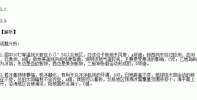 ͼ1ÖÐÐéÏß±íʾ±±¼«µØÇø7Ô·Ý10¡æµÈÎÂÏß¡£¶Áͼ£¬»Ø´ðÏÂÁи÷Ìâ¡£
