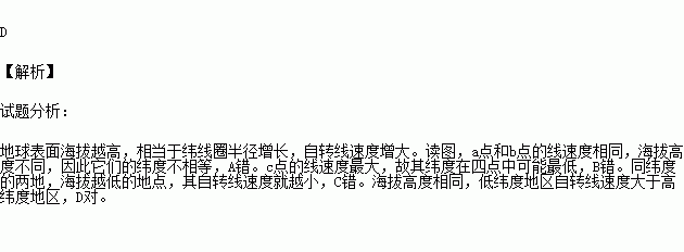 如图是地球表面自转线速度及海拔高度关联图,根据图中a、b、c、d各点判断以下叙述正确的是