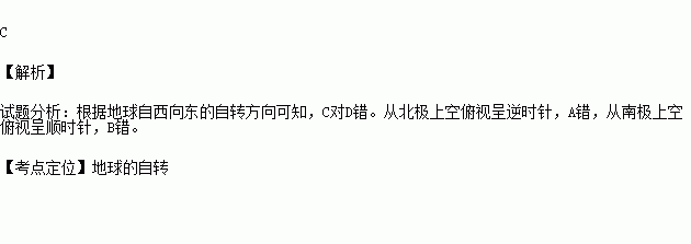 下列四幅图中,能正确表示地球自转方向的是