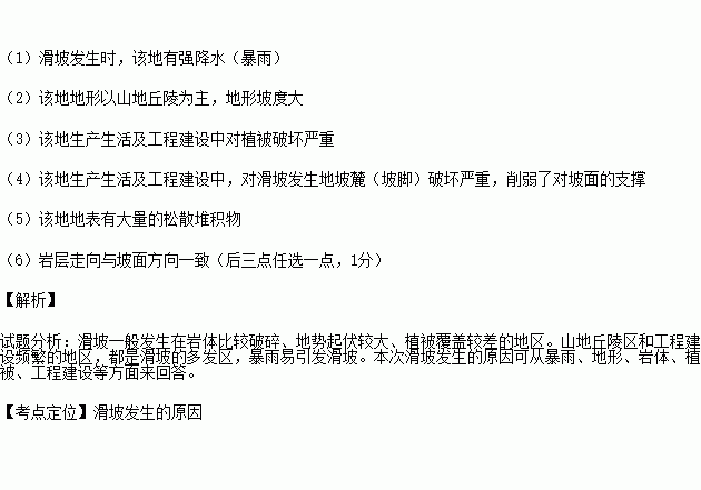 根据以上材料,推测本次滑坡发生原因。