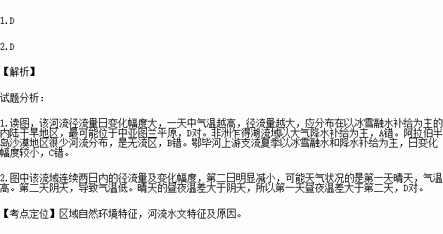 下图是某流域连续两日的河流径流变化图,读图回答下列各题。