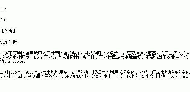 2.¶Ô1985ÄêÓë2000Äê³ÇÊÐÍÁµØÀûÓÃͼ²ã½øÐзÖÎö£¬Äܹ»( )