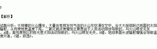 大规模的火山爆发可能造成地表温度下降。其合理的解释是火山爆发导致