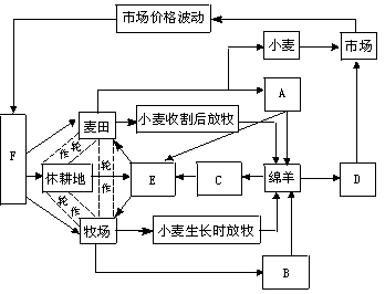 µÚÒ»£¬·ÖÎöͼÖи÷ÏÖÏóÖ®¼äµÄ¹ØÁª£¬Íê³ÉÉú̬ϵͳµÄÑ»·¡£°Ä´óÀûÑÇÄ«ÀÛ¡ª´ïÁîÅèµØµÄ»ìºÏÅ©³¡ÊǸöÁ¼ÐÔÉú̬ϵͳ£¬Å©³¡ÄÚÍÁµØ½»ÌæÖÖֲСÂó¡¢ÄÁ²Ý»òÐݸû£¬¿É³ä·Ö±£³ÖÂóÌï·ÊÁ¦£»Ð¡ÂóÊÕ¸îºó¿É·ÅÄÁÃàÑò£¬Í¬Ê±ÂóÌïÌṩÁË×÷Îï½Õ¸Ñ£¬¿É×÷ΪÄÁÑòµÄËÇÁÏ£»Ñò·à¿É³ÉΪÂóÌïµÄ·ÊÁÏ¡¢Ôö¼ÓÍÁÈÀ·ÊÁ¦£»»ìºÏũҵÊôÉÌÆ·Å©Òµ£¬ÆäСÂó¡¢Ñòë¡¢ÑòÈâ´ó¶àÒÔÏúÊÛΪÖ÷¡£µÚ¶þ£¬ÕâÑùµÄÅ©³¡¾Óª£¬Å©Ãñ¿É¸ù¾ÝÊг¡µÄÐèÇóÀ´¾ö¶¨¶àÖÖСÂó»¹ÊǶàÄÁÑò£¬Å©ÒµÉú²úÓкܴóµÄÁé»îÐÔ£¬¶ÔÊг¡¼Û¸ñµÄ²¨¶¯ÓнÏÇ¿µÄÊÊÓ¦ÐÔ£¬Å©ÃñÊÕÈëµÄ²¨¶¯ÐÔ½ÏС¡£µÚÈý£¬¸ÃÅ©³¡ÖÐÅ©Ãñ¿ÉÓÐЧµØÀûÓÃʱ¼ä°²ÅÅũҵ»î¶¯£¬ÄÁÑò»î¶¯ºÍ¸û×÷»î¶¯ÔÚÒ»ÄêÄڿɽ»Ìæ½øÐУ¬ÄϰëÇò¼¾½ÚÓë±±°ëÇòÕýºÃÏà·´£¬ÆäСÂóÊÕ¸îÆÚÔÚʮһ¡¢Ê®¶þÔ¡£µÚËÄ£¬´ÓÄ«ÀÛ¡ª´ïÁîÅèµØËù´¦µÄλÖÿ´£¬Ëü´¦ÓÚ´ó·ÖË®ÁëÎ÷²à£¬Êôº£ÑóÆøÁ÷µÄ±³·çÆÂ£¬½µË®½ÏÉÙ£¬¹à¸È³ÉΪÕâÀïÅ©ÄÁÒµ·¢Õ¹µÄÏÞÖÆÐÔÌõ¼þ£¬Îª´Ë¸Ã¹úÐÞ½¨Á˶«Ë®Î÷µ÷Ë®Àû¹¤³Ì¡£