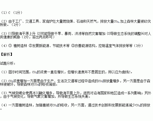 分析“近年来大气中CO2的增长示意图”并回答下列问题(8分)。