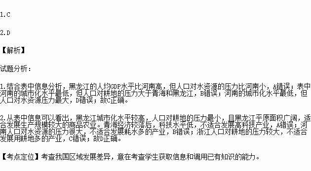 区域人口对资源压力指数是全国某资源人均占有量与区域该资源人均占有量之比,此比值可作为判断区域人口规模适宜程度的指标之一。读表,完成各题。