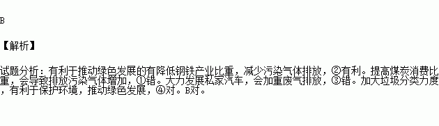 ③大力发展私家汽车 ④加大垃圾分类力度