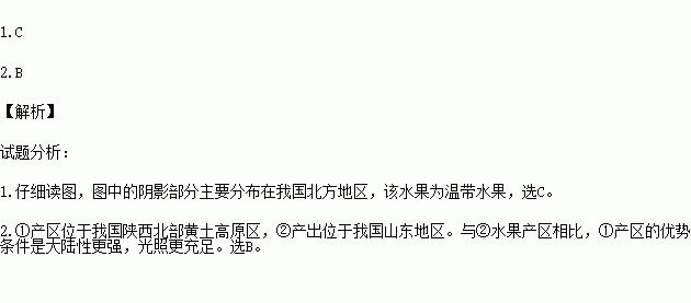 下图中阴影部分为我国某种水果集中产区。读图回答下列问题。