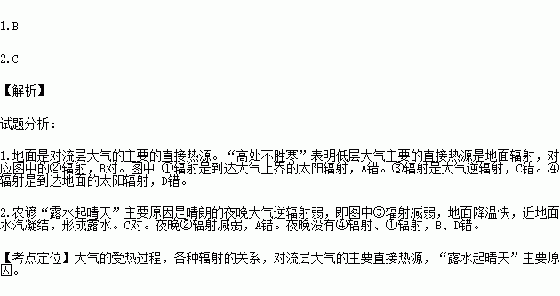1.“高处不胜寒”表明低层大气主要的直接热源是