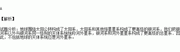 A.河外星系 B.总星系 C.银河系 D.太阳系