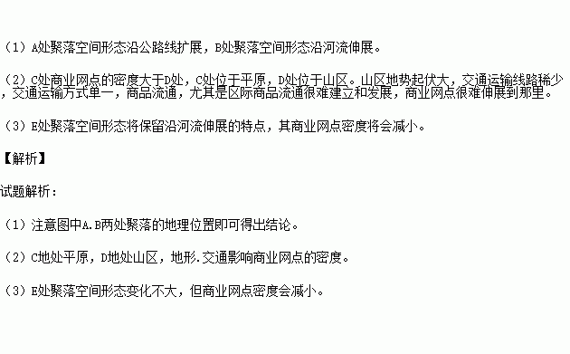 (3)图中E处河港曾经是该地区对外联系的主要枢纽,盛极一时。后因泥沙淤积和公路发展,该河港最终废弃。试述该种变化对E地聚落空问形态和商业网点密度的影响。