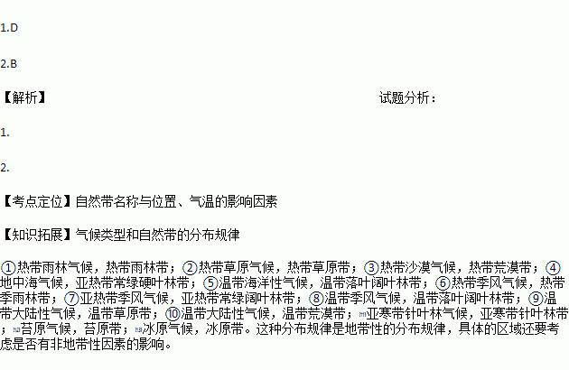 C. 温带落叶阔叶林带 D. 亚热带常绿硬叶林带
