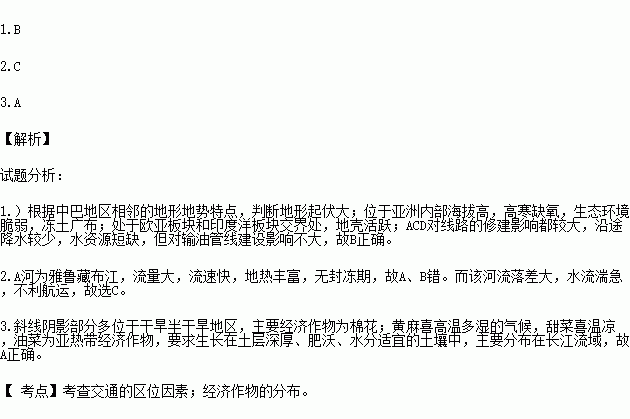 3.图中斜线阴影表示某种经济作物产区,该经济作物可能是