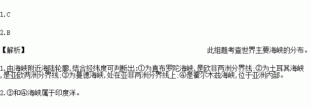 1.上述海峡中位于亚洲和非洲之间的是( )