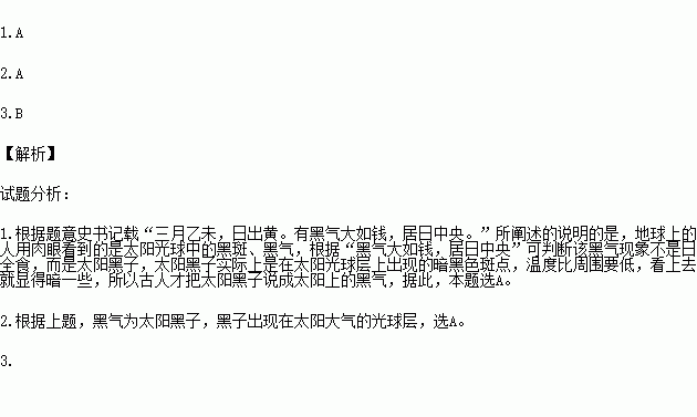 公元前28年,史书记载“三月乙未,日出黄。有黑气大如钱,居日中央。”据此回答8—10题: