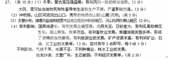 (4)根据新疆自然状况,分析对新疆经济发展的影响。(5分)